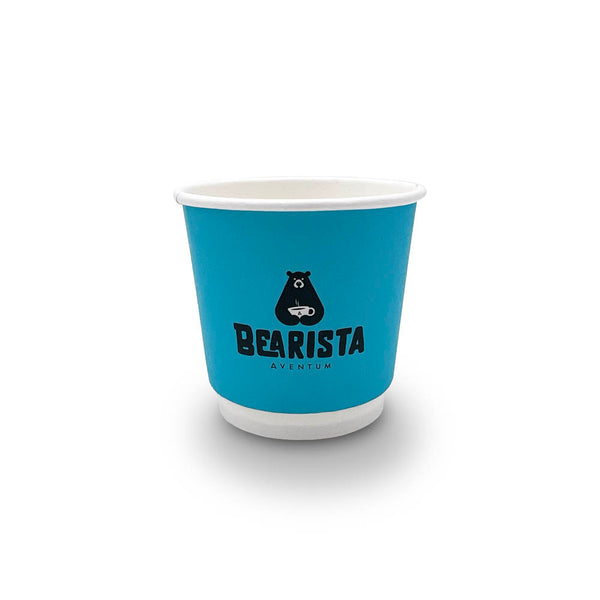 Bespoke printed single wall 4oz paper cups are ideal for espresso shots, flat whites and sample cups. PackGenie supplies many business' high-quality personalised paper cups. Available in super fast delivery options if you have a deadline for a promotional event, show or running low on stock. Double-wall paper cups are a great cost effective solution to cup print. Great for helping your brand stand out, no matter if its for your coffee shop, cafe, hotel or promotional event. 100% recyclable and are made from paper sourced from approved and managed forests. Suited for hot and cold beverages such as Coffee, Hot Chocolate, Tea, and also food like snacks, noodles and soup. They are printed in CMYK full colour with a matt finish. Lids sold separately, matching lids in the description link below.